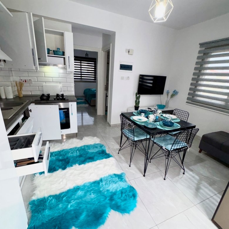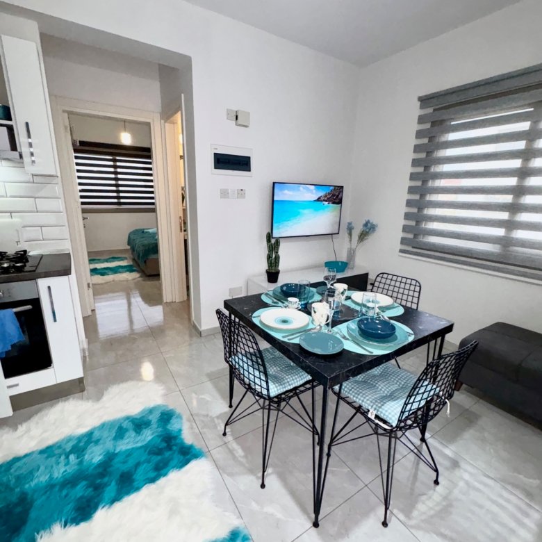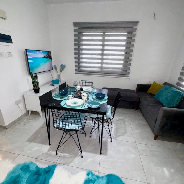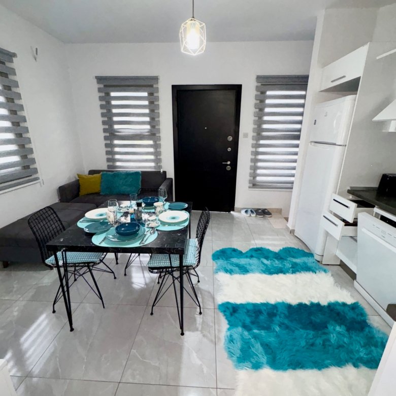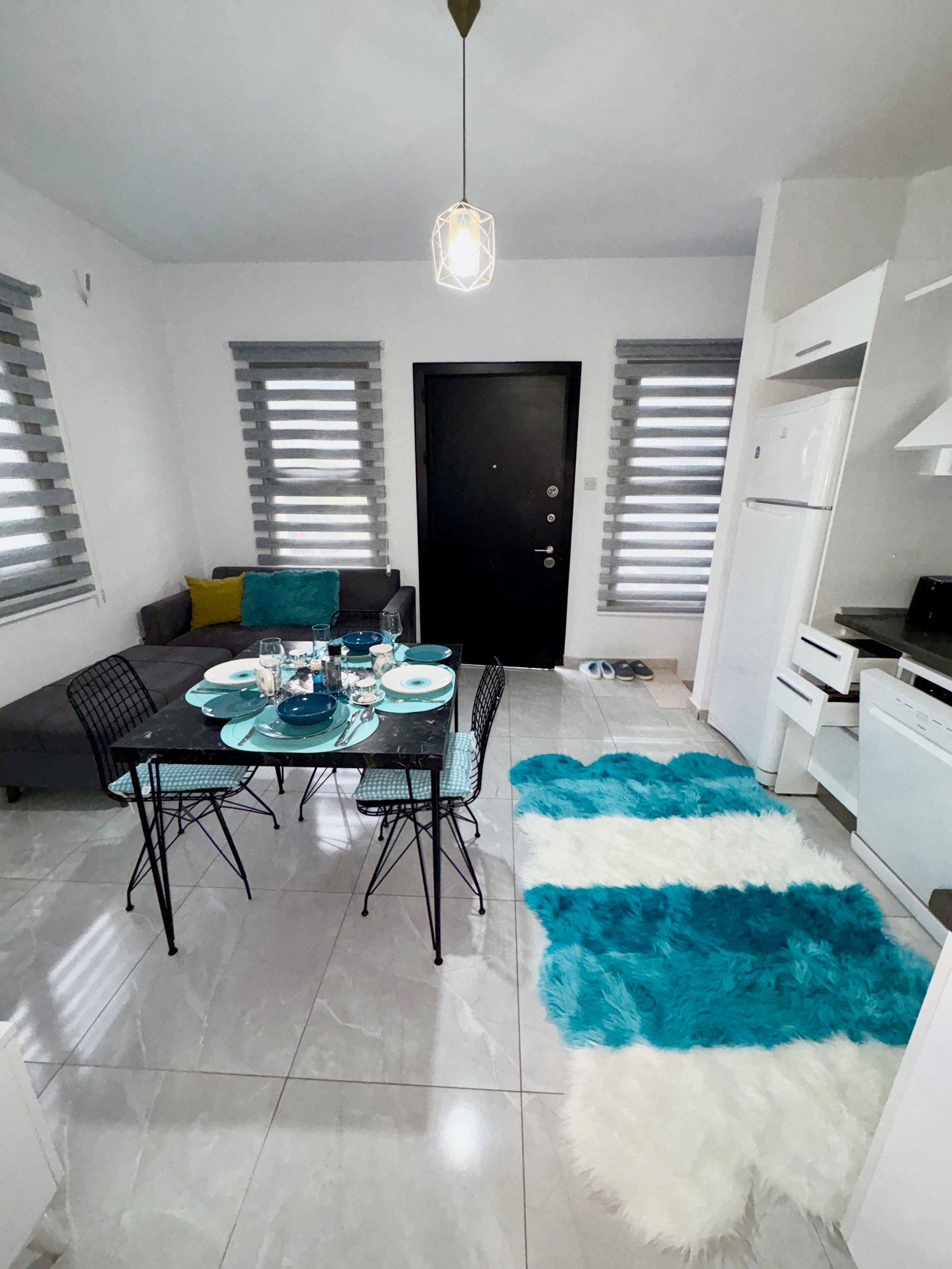 Welcome to Turquoise Breeze, a stylish 2+1 apartment in Lapta where calm Mediterranean tones meet modern comfort. Just a 10minutes from the Merit Casino 🃏 and 800m from the beautiful coastline 🌊, this apartment is an ideal choice for guests seeking convenience, relaxation, and a fresh seaside atmosphere.
