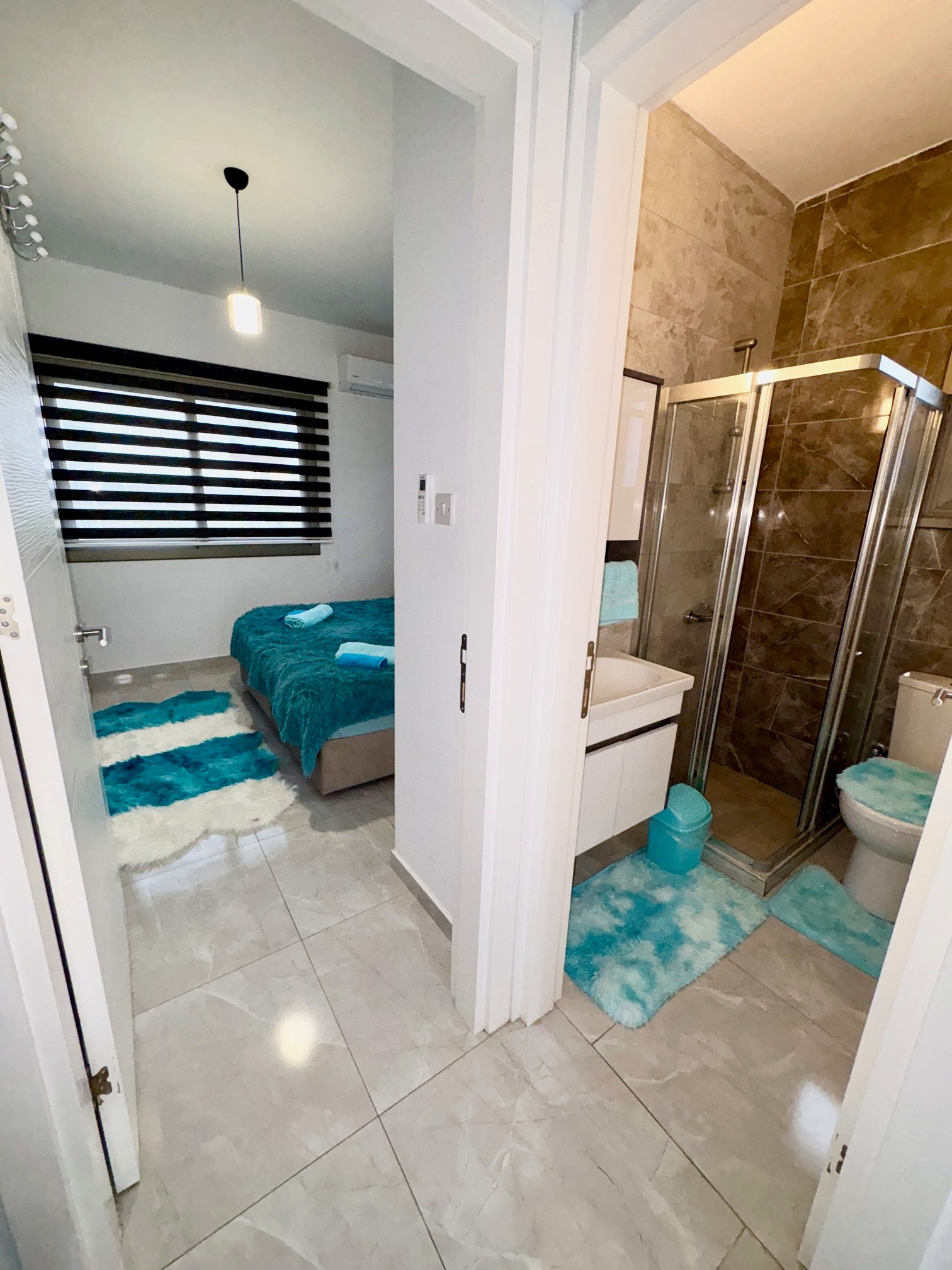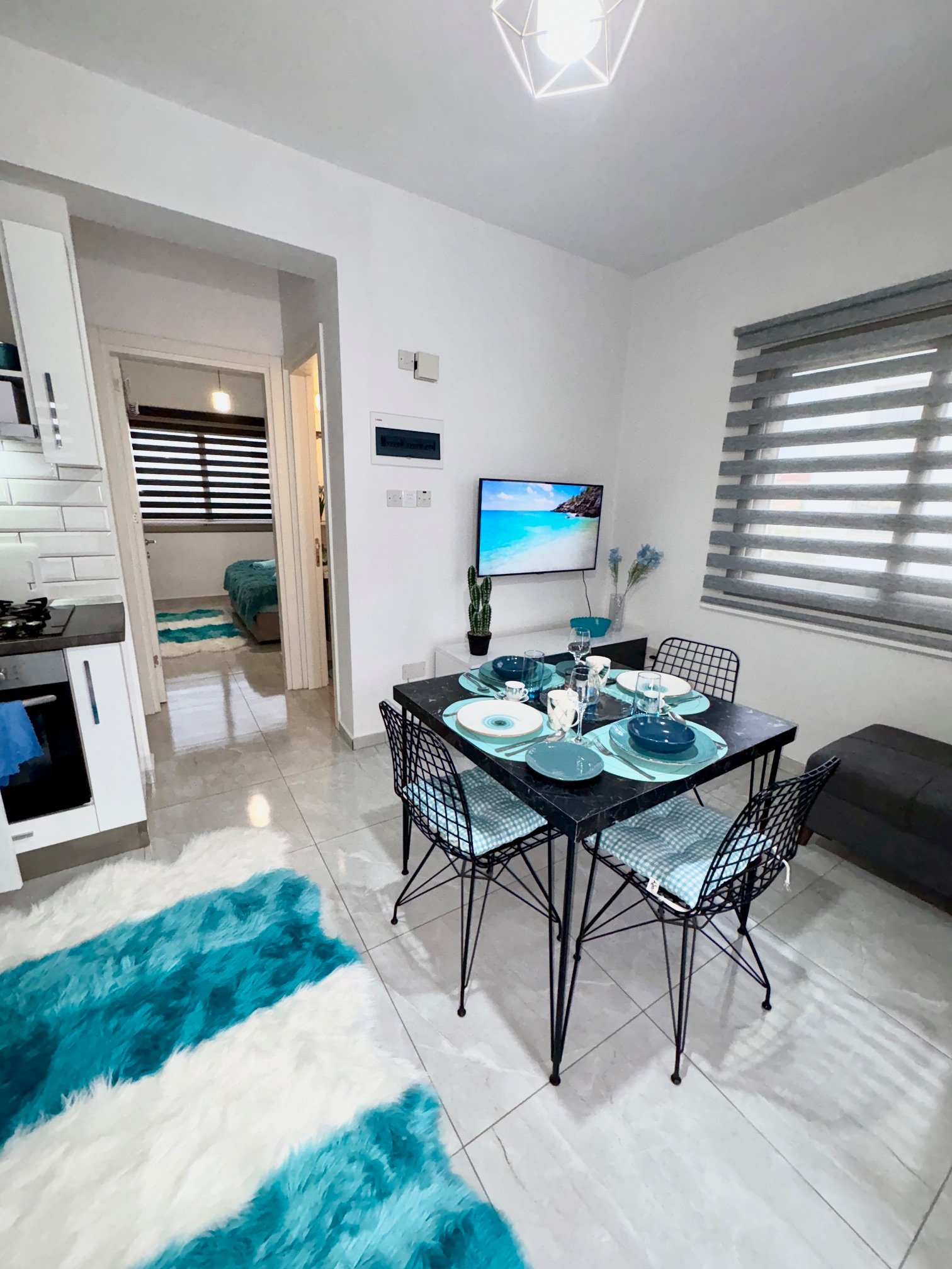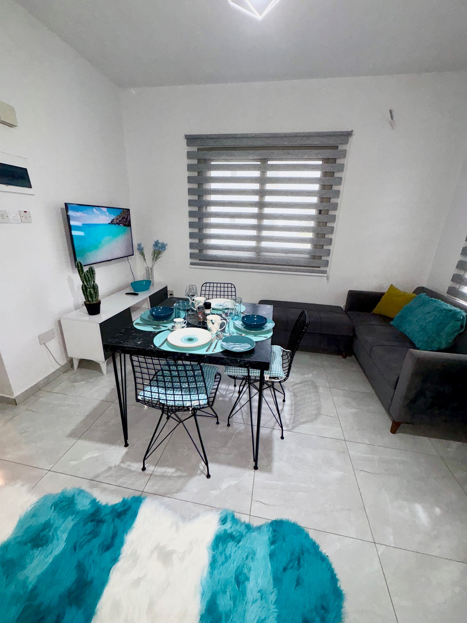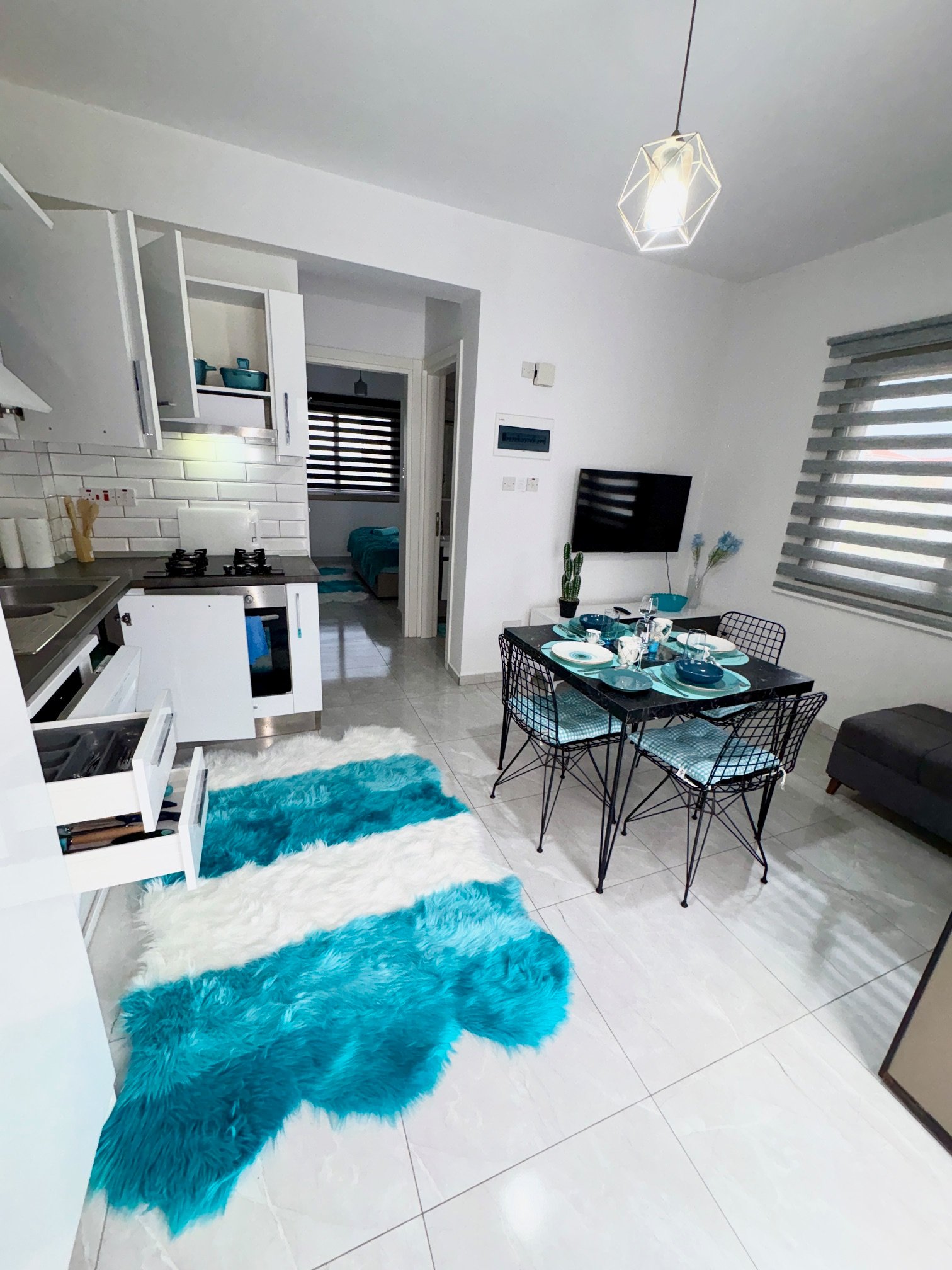 Welcome to Turquoise Breeze, a stylish 2+1 apartment in Lapta where calm Mediterranean tones meet modern comfort. Just a 10minutes from the Merit Casino 🃏 and 800m from the beautiful coastline 🌊, this apartment is an ideal choice for guests seeking convenience, relaxation, and a fresh seaside atmosphere.