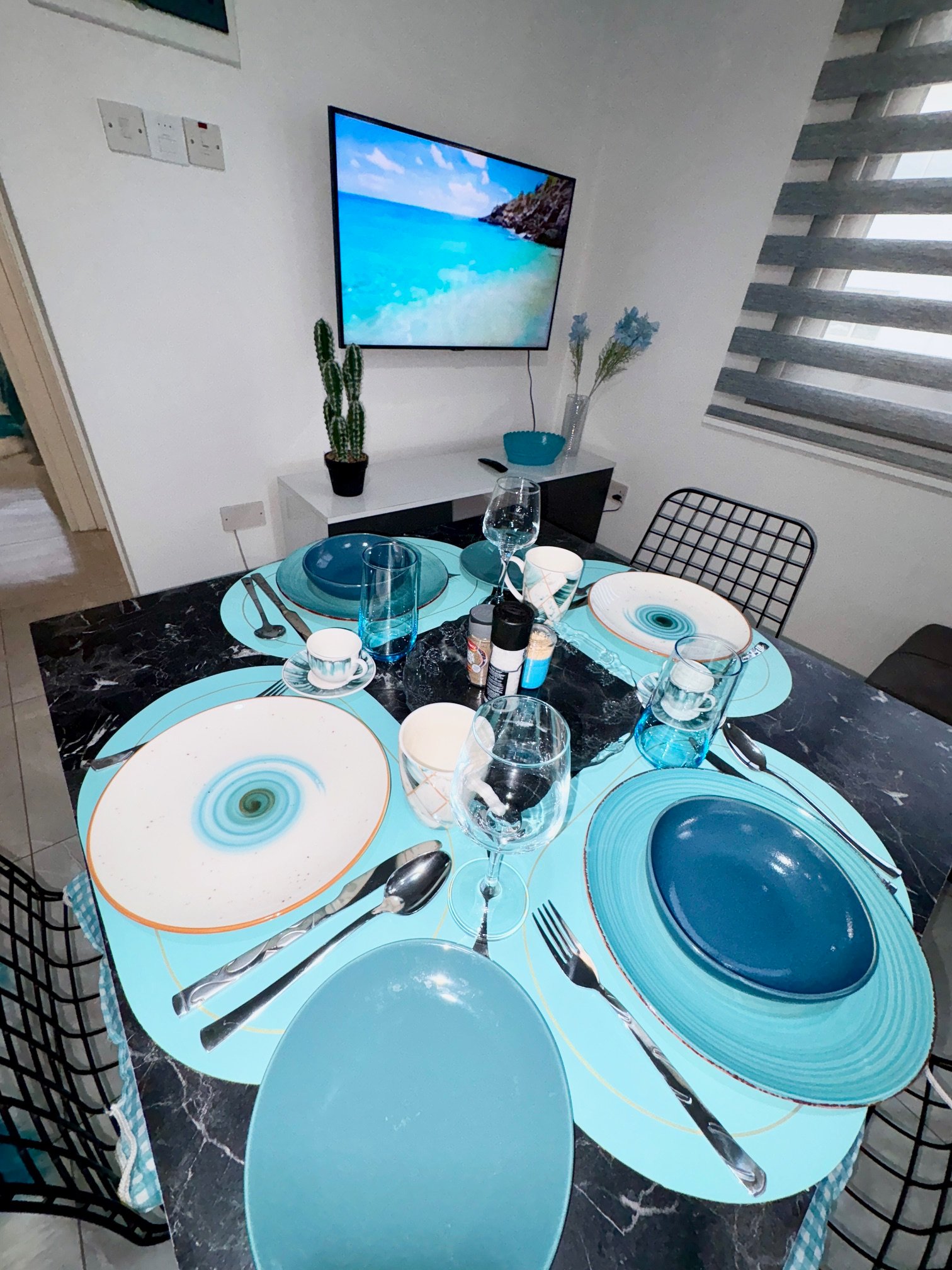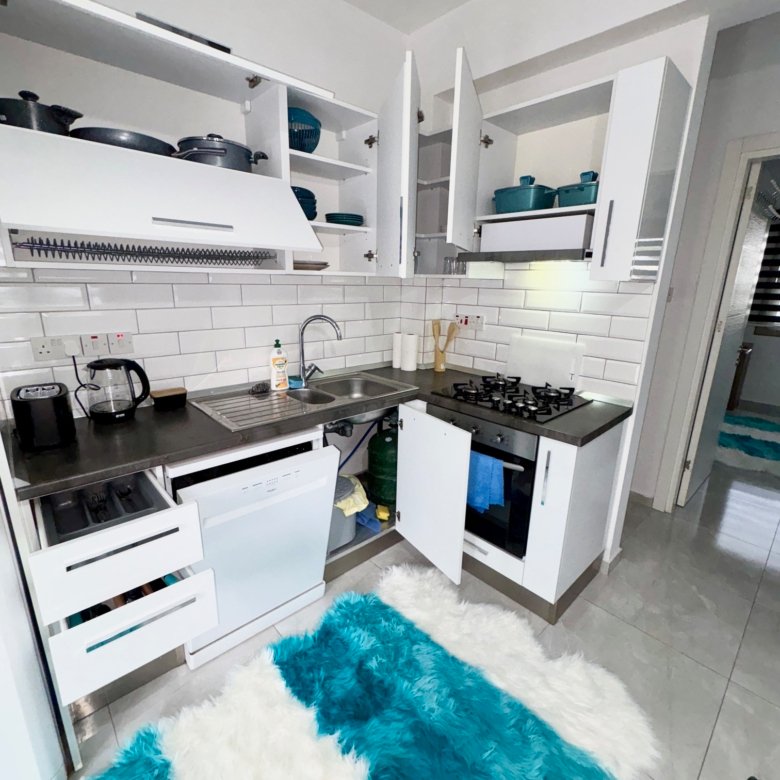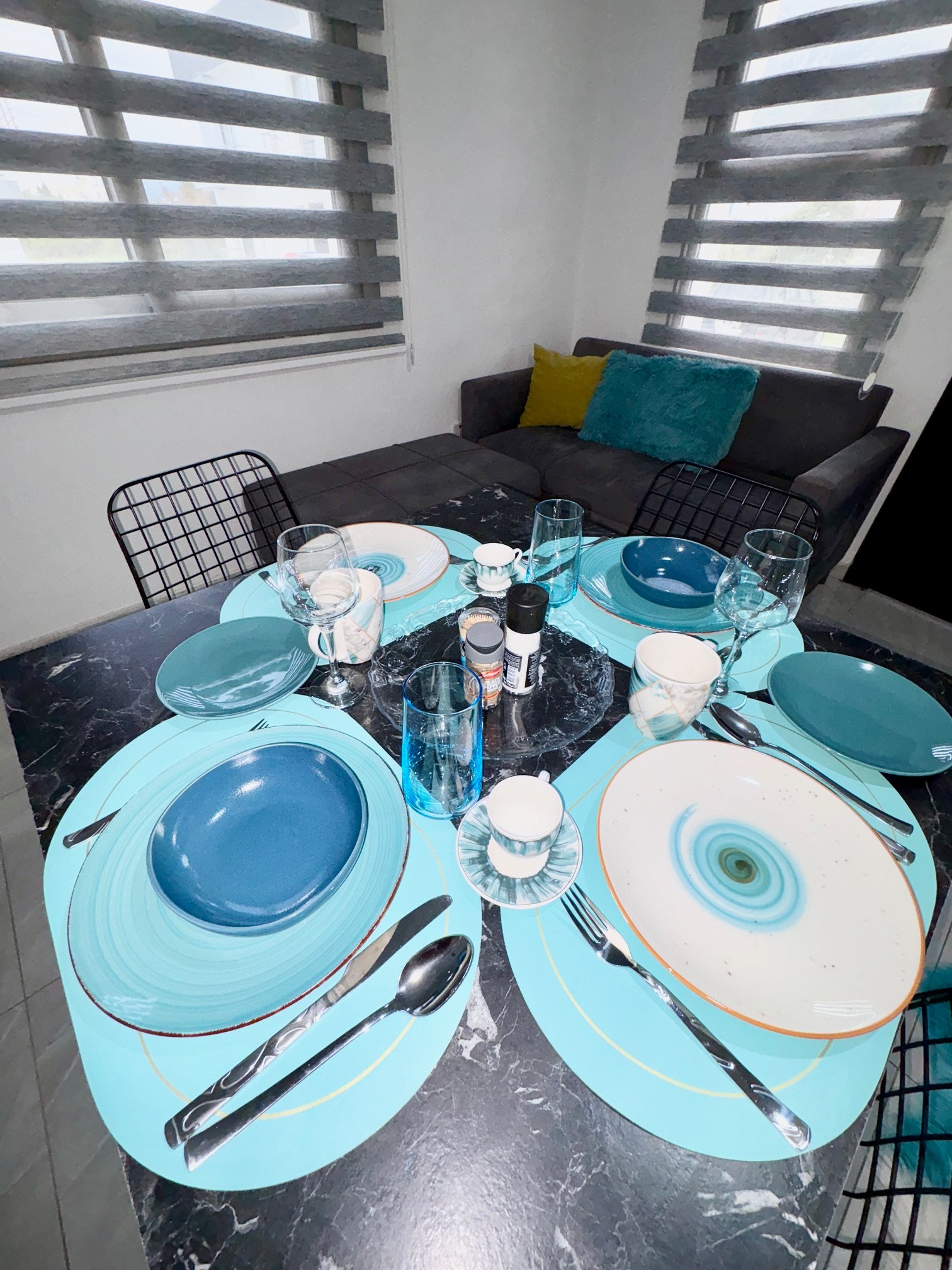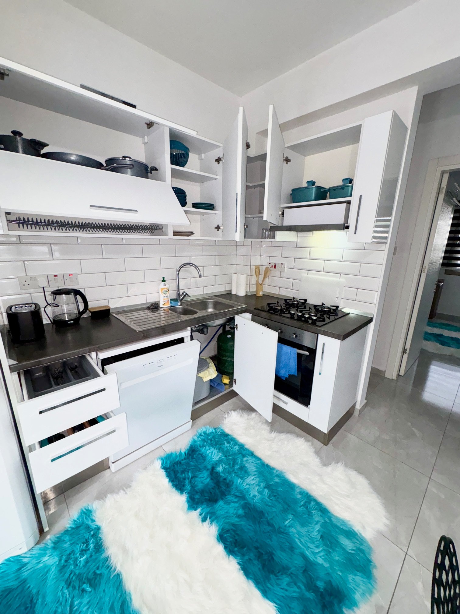 Welcome to Turquoise Breeze, a stylish 2+1 apartment in Lapta where calm Mediterranean tones meet modern comfort. Just a 10minutes from the Merit Casino 🃏 and 800m from the beautiful coastline 🌊, this apartment is an ideal choice for guests seeking convenience, relaxation, and a fresh seaside atmosphere.