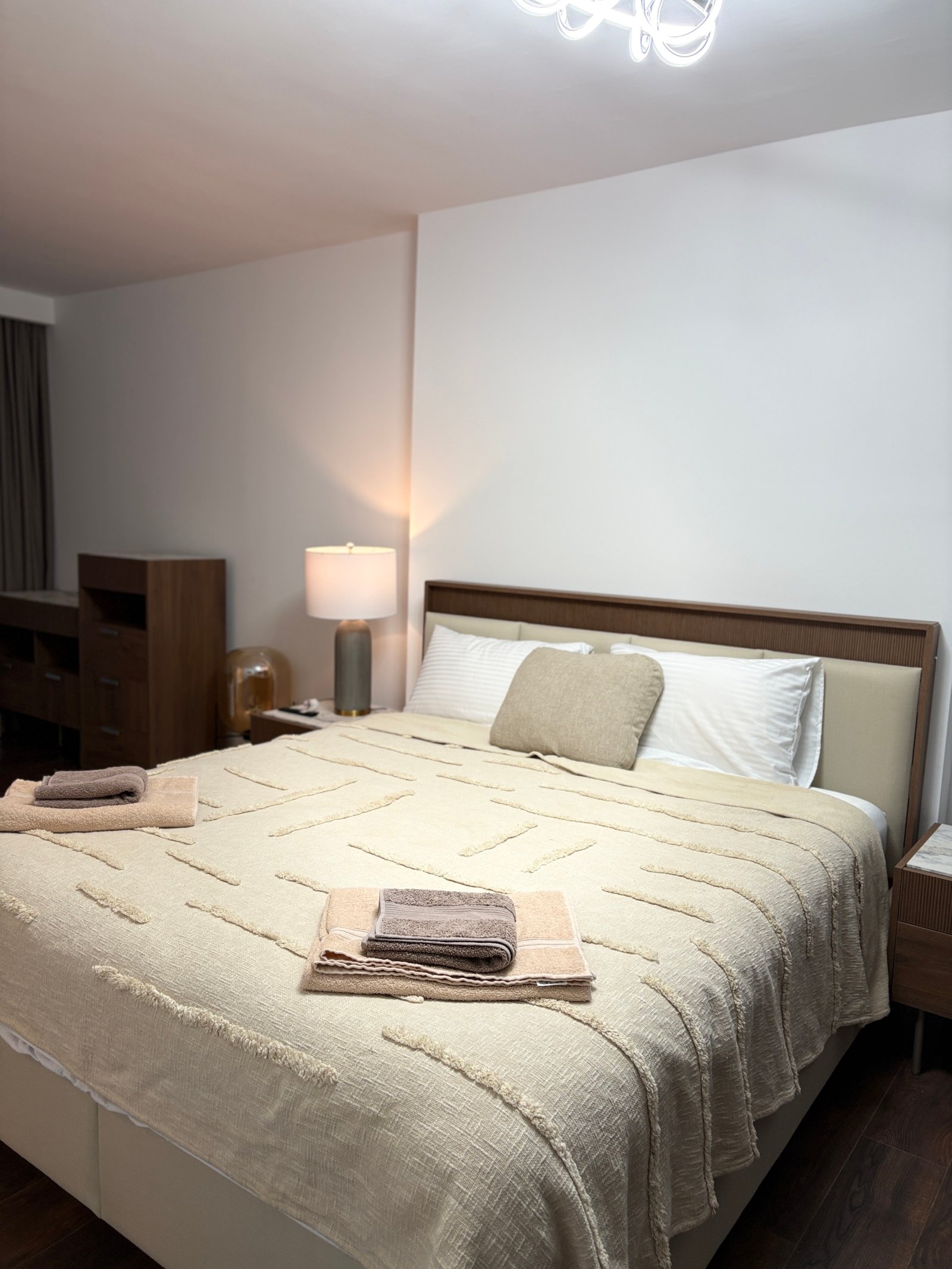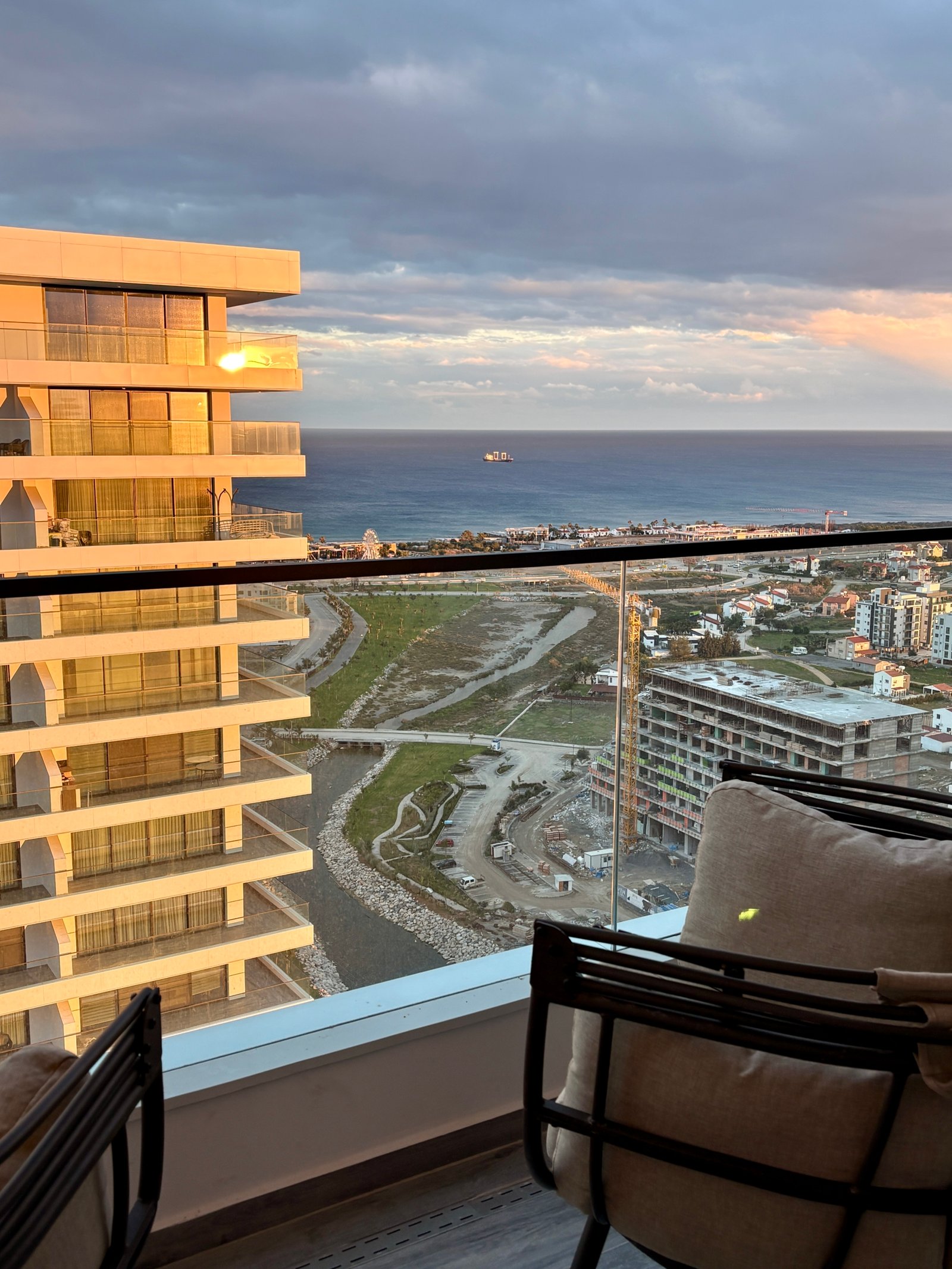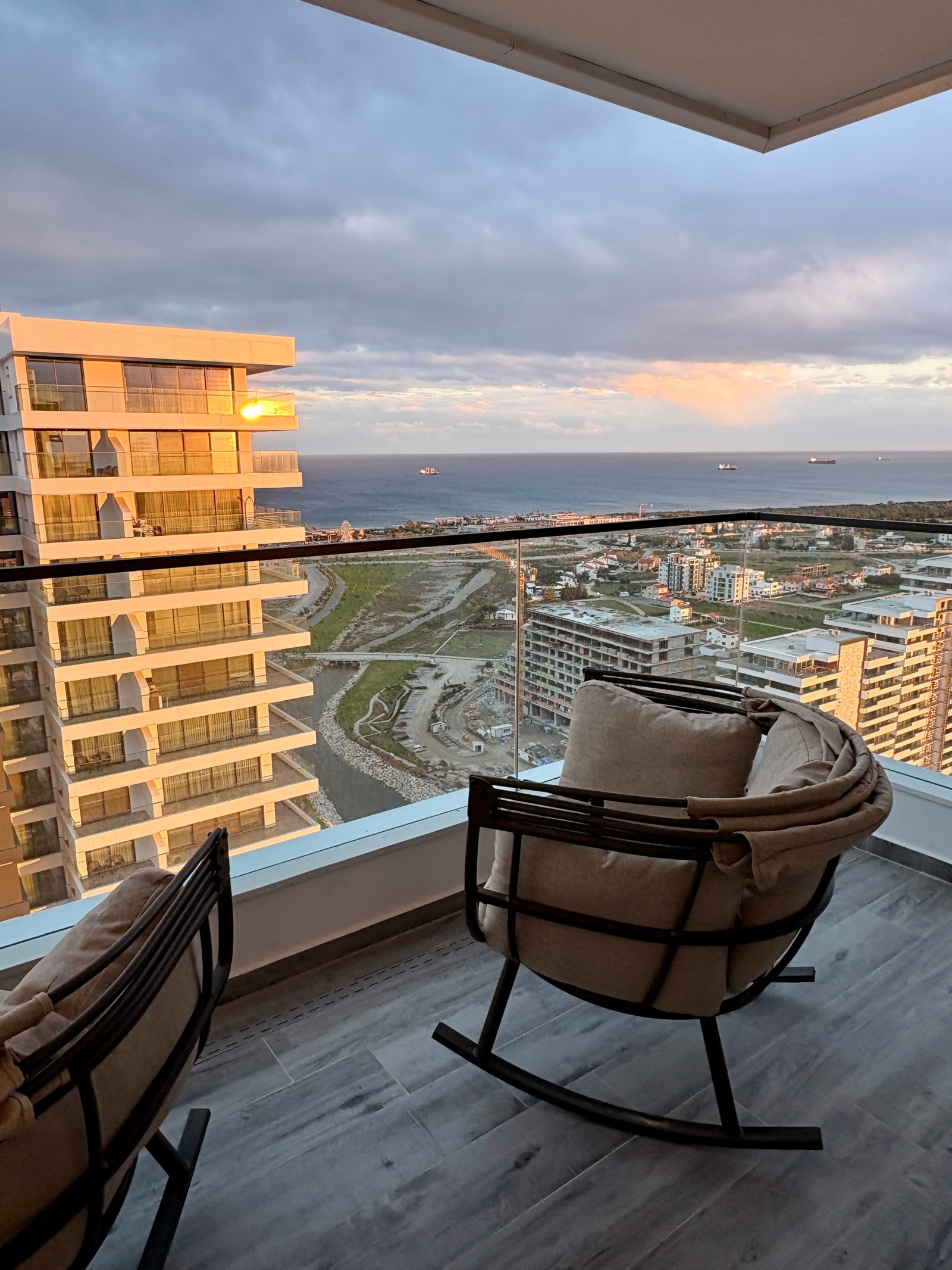 Welcome to an exceptional super-luxury 1+1 apartment located on the 27th floor in one of Long Beach’s most prestigious residential towers in Northern Cyprus. From the moment you enter, you are greeted by breathtaking panoramic views over both the Mediterranean Sea and the city skyline — day and night. This elegant, fully equipped apartment features a modern open-plan living space, a stylish bedroom with a comfortable French (double) bed, a sleek bathroom, and a private balcony perfect for sunrise coffees or sunset moments high above the coast. Designed for comfort and sophistication, the apartment is located in a luxury building with reception services, offering a hotel-like experience combined with the privacy of your own home.